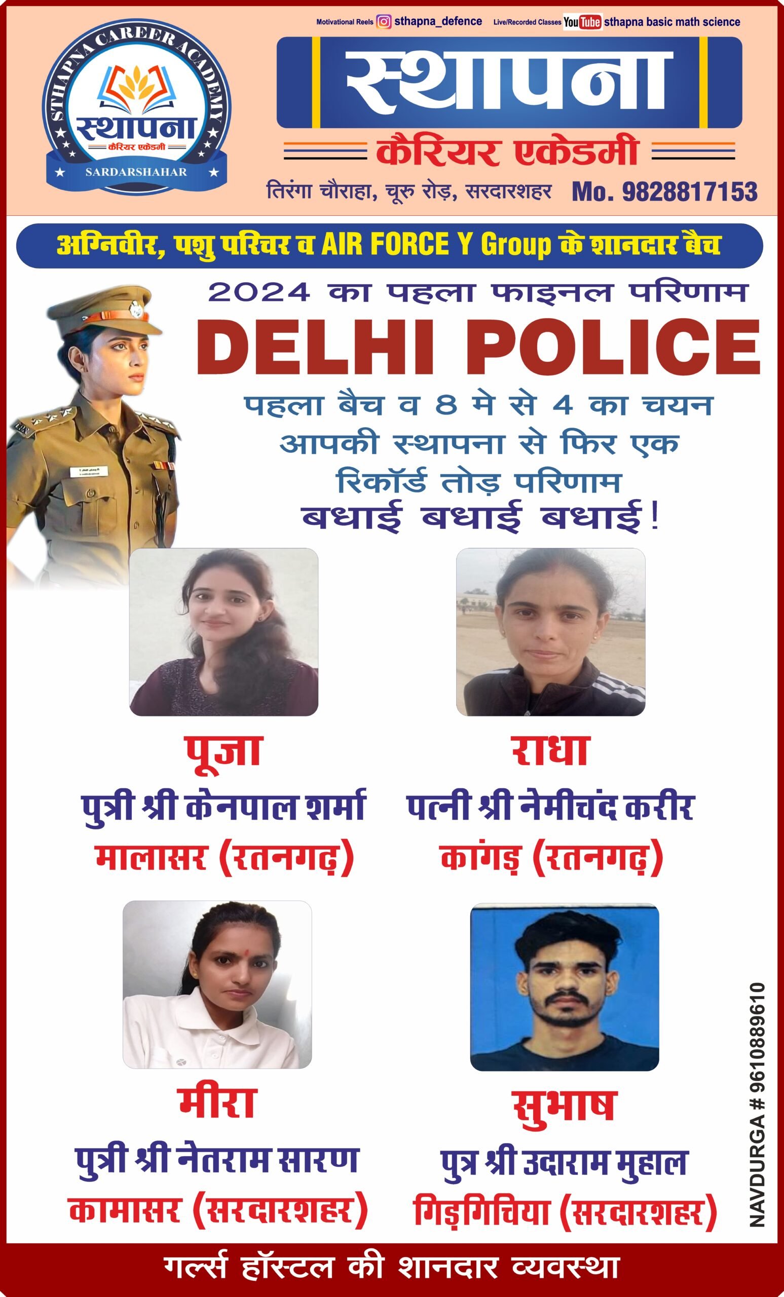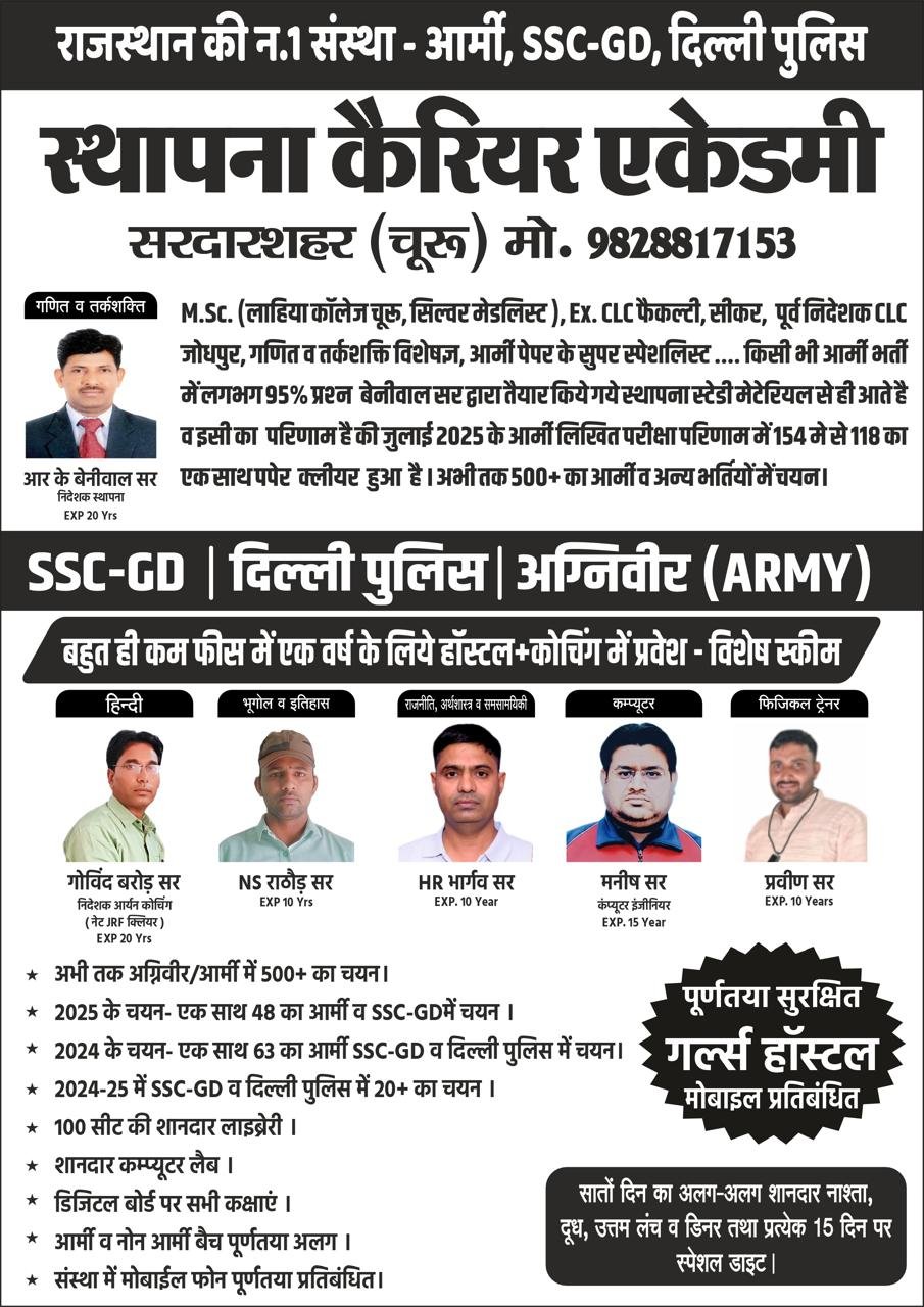 At Sthapna Career Academy, we focus on providing quality education, disciplined training, and proper guidance to help students achieve success in the SSC GD Constable Exam conducted by the Staff Selection Commission. Our goal is to build confidence, improve knowledge, and prepare students for a successful career in the security forces.